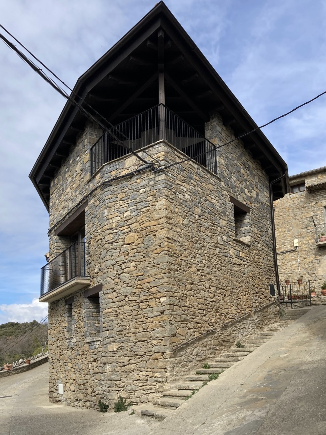 El proyecto consiste en reconstruir un antiguo pajar situado en el municipio de Troncedo, La Fueva (Huesca), para formación de una vivienda unifamiliar entre medianeras con garaje en la planta semisótano, y vivenda en plantas baja y piso.